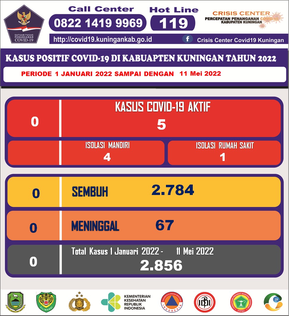DATA KASUS Tanggal UpdateRabu, 11 Mei 2022 - 08:45 KONTAK ERAT Kontak Erat - Total9.881 Kontak Erat - Discarded9.881 Kontak Erat - Karantina0 Rincian Jenis Kelamin Laki-laki4793 Jenis Kelamin Perempuan5088 WNI9881 WNA0 Usia 0 - 11 Bulan41 Usia 1 - 5 Tahun338 Usia 6 - 19 Tahun1812 Usia 20 - 29 Tahun1776 Usia 30 - 39 Tahun1612 Usia 40 - 49 Tahun2080 Usia 50 - 59 Tahun1418 Usia 60 - 69 Tahun595 Usia 70 -79 Tahun199 Usia > 80 Tahun49 SUSPEK Kasus Suspek - Total3748 Kasus Suspek - Discarded3748 Kasus Suspek - Masih Karantina0 Rincian Jenis Kelamin Laki-laki2047 Jenis Kelamin Perempuan1701 WNI3747 WNA1 Usia 0 - 11 Bulan159 Usia 1 - 5 Tahun148 Usia 6 - 19 Tahun319 Usia 20 - 29 Tahun762 Usia 30 - 39 Tahun601 Usia 40 - 49 Tahun553 Usia 50 - 59 Tahun579 Usia 60 - 69 Tahun398 Usia 70 -79 Tahun163 Usia > 80 Tahun51 RAPID POSITIF Rapid Positif - Total1.001 Rapid Positif - Masih Karantina0 Rapid Positif - Sembuh955 Rapid Positif - Meninggal46 Rapid Positif - Jadi Konfirmasi Positif0 PROBABLE Probable - Total159 Probable - Masih Karantina0 Probable - Discarded141 Probable - Meninggal18 Rincian Jenis Kelamin Laki-laki70 Jenis Kelamin Perempuan89 WNI159 WNA0 Usia 0 - 11 Bulan2 Usia 5 Tahun0 Usia 6 - 19 Tahun4 Usia 20 - 29 Tahun7 Usia 30 - 39 Tahun23 Usia 40 - 49 Tahun30 Usia 50 - 59 Tahun38 Usia 60 - 69 Tahun31 Usia 70 -79 Tahun18 Usia > 80 Tahun4 KASUS KONFIRMASI Kasus Konfirmasi - Total16.584 Kasus Konfirmasi - Masih Karantina5 Kasus Konfirmasi - Discarded15.806 Kasus Konfirmasi - Meninggal773 Rincian Jenis Kelamin Laki-laki7237 Jenis Kelamin Perempuan9347 WNI16584 WNA0 Usia < 5 Tahun482 Usia 6 - 19 Tahun2635 Usia 20 - 29 Tahun2440 Usia 30 - 39 Tahun2593 Usia 40 - 49 Tahun2682 Usia 50 - 59 Tahun2903 Usia 60 - 69 Tahun1856 Usia 70 - 79 Tahun804 Usia > 80 Tahun188 Gambar Release Harian